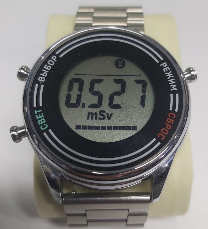 Сигнализатор индикатор может использоваться для измерения МЭД и ЭД фотонного излучения широким кругом потребителей (сотрудниками таможенных и пограничных служб, транспортных организаций, персоналом атомных установок, радиологических и изотопных лабораторий, сотрудниками аварийных служб, гражданской обороны, пожарной охраны, полиции и т. д.) в местах, где излучение является опасным для здоровья людей, а также использоваться в качестве наручных часов.